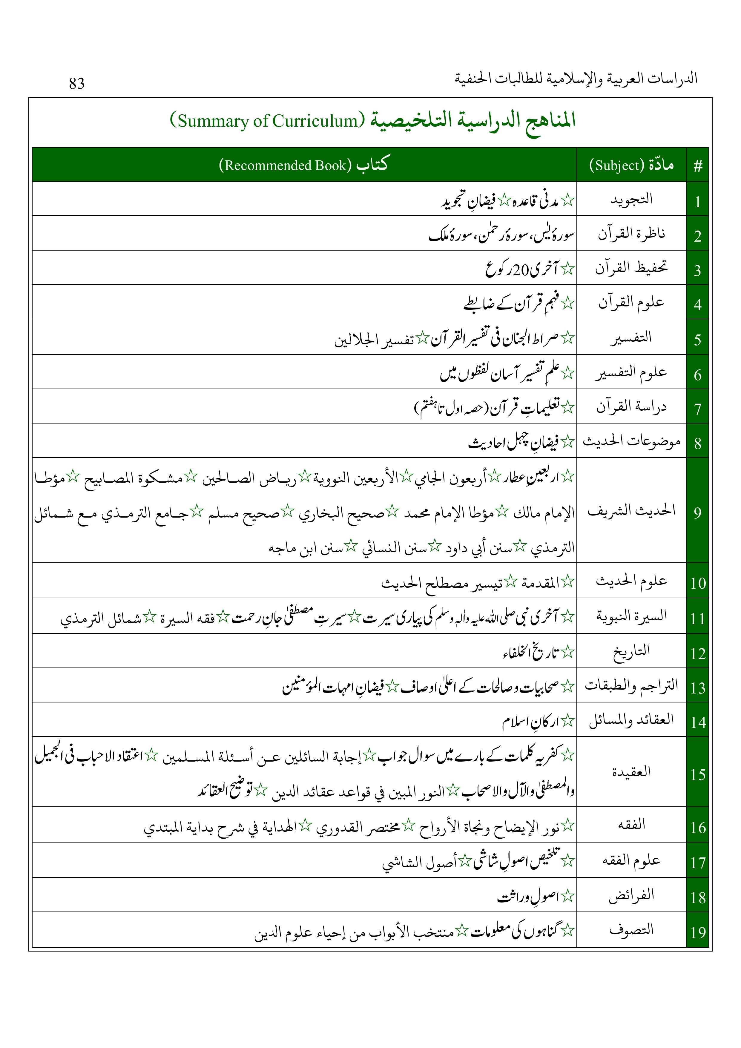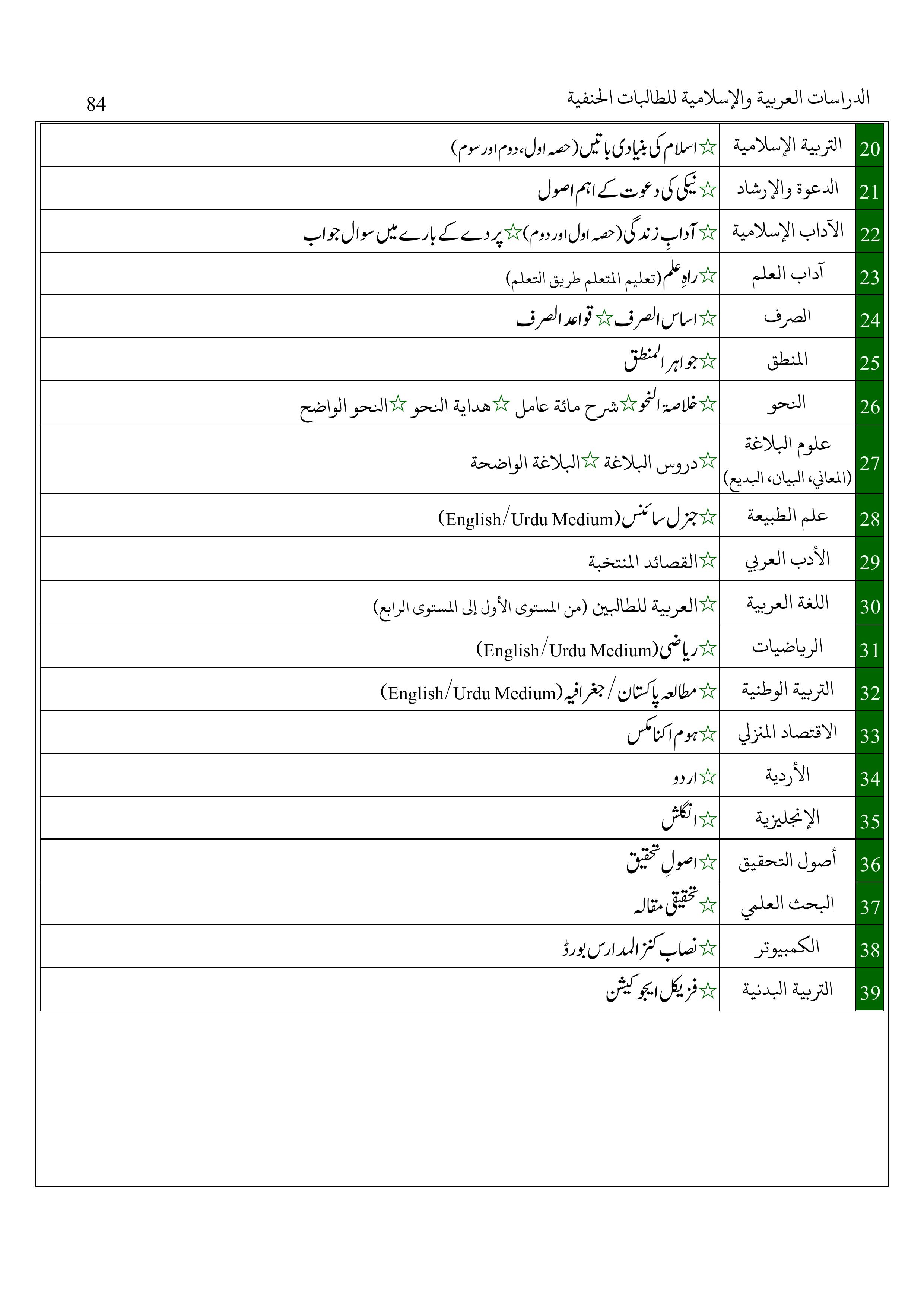 Dars e Nizami (Girls) Middle Part 1 to M.A Part 2