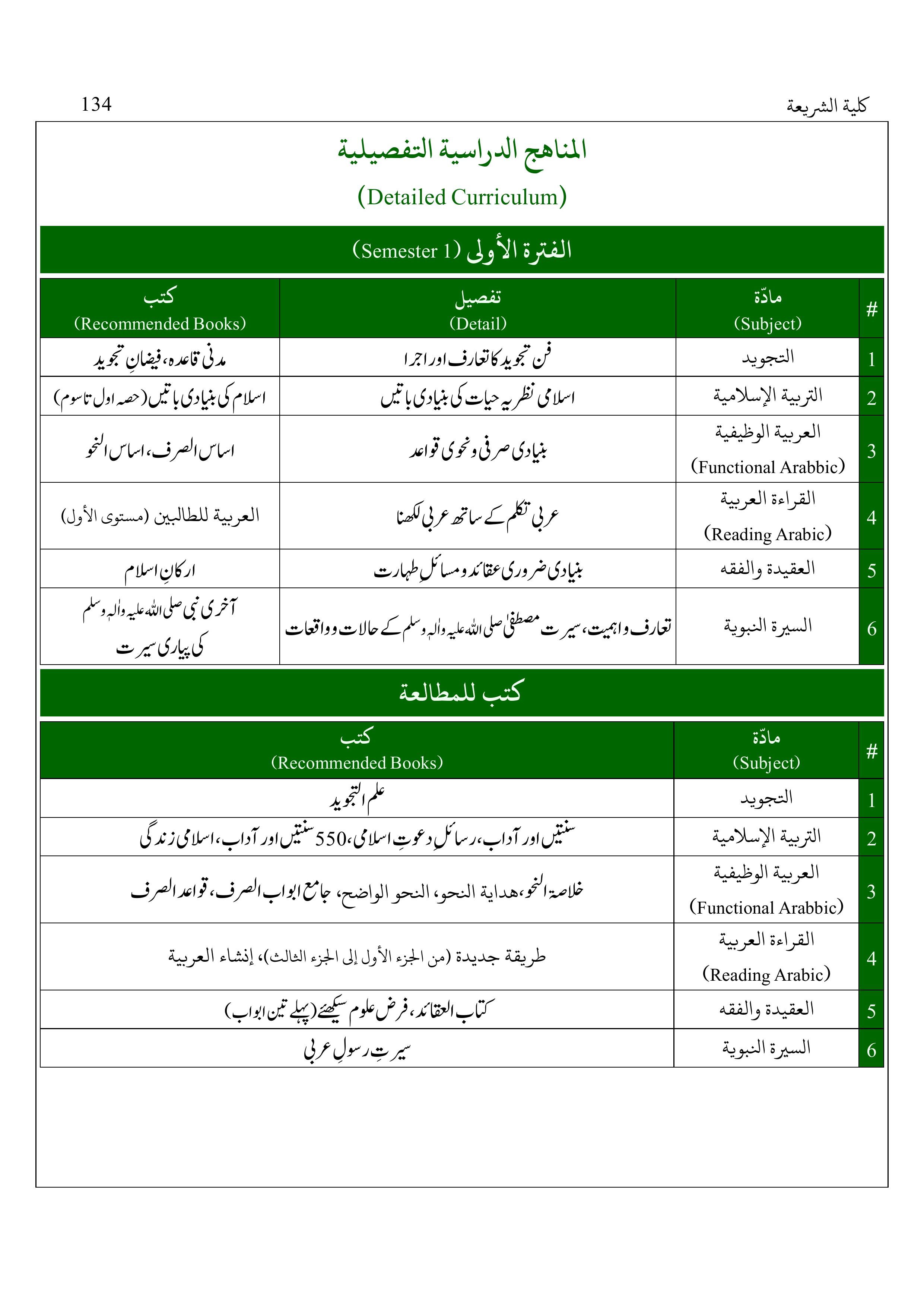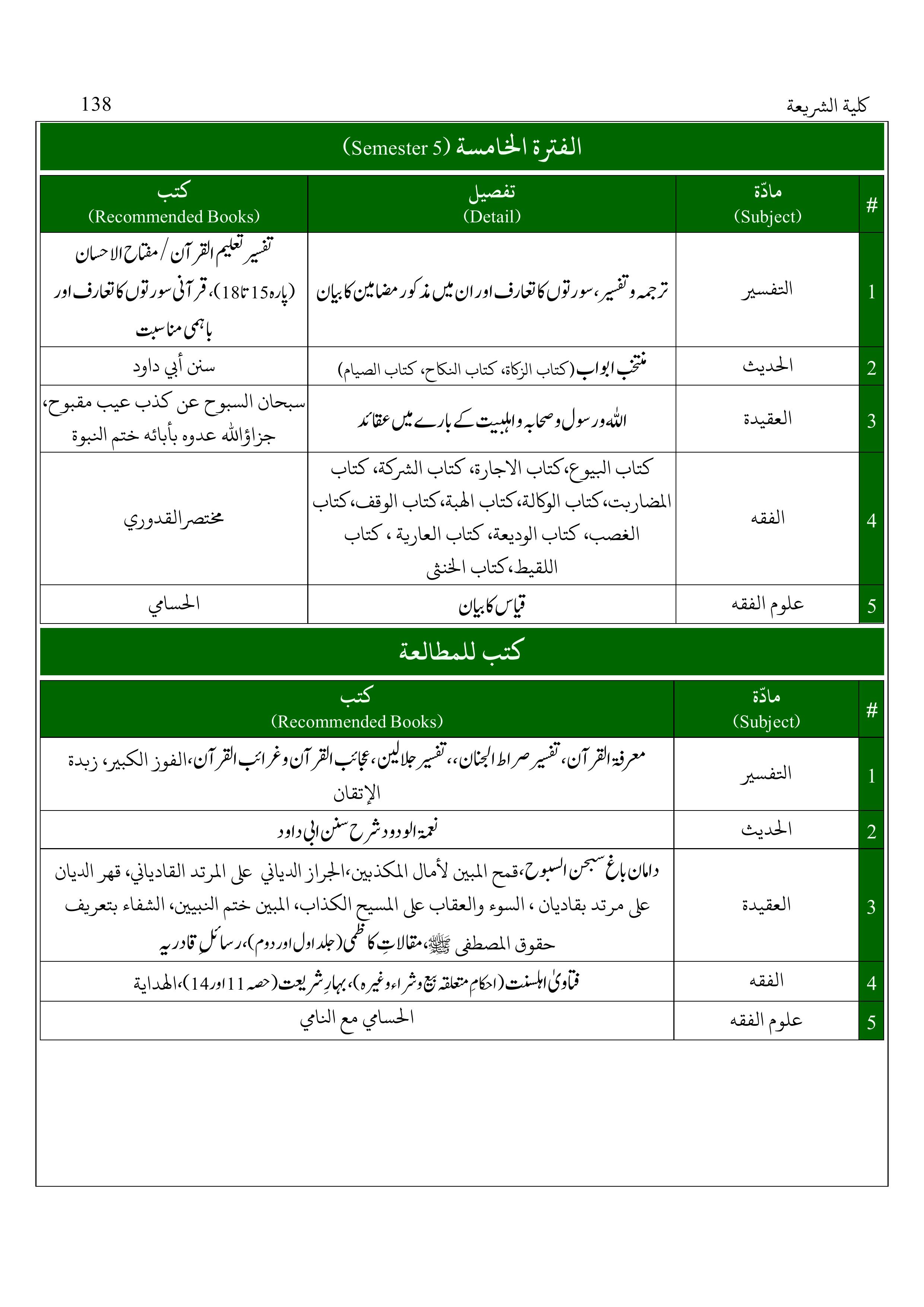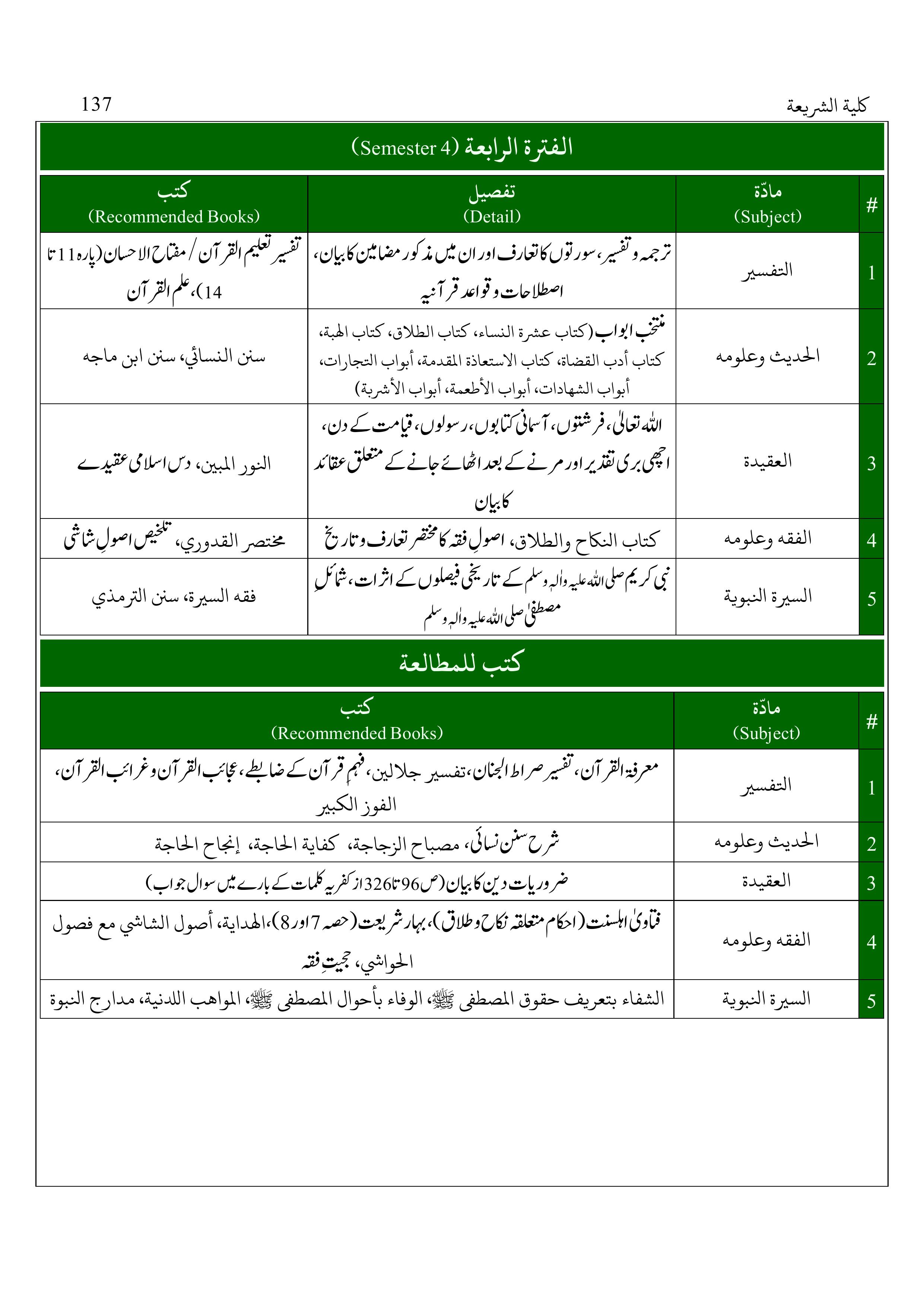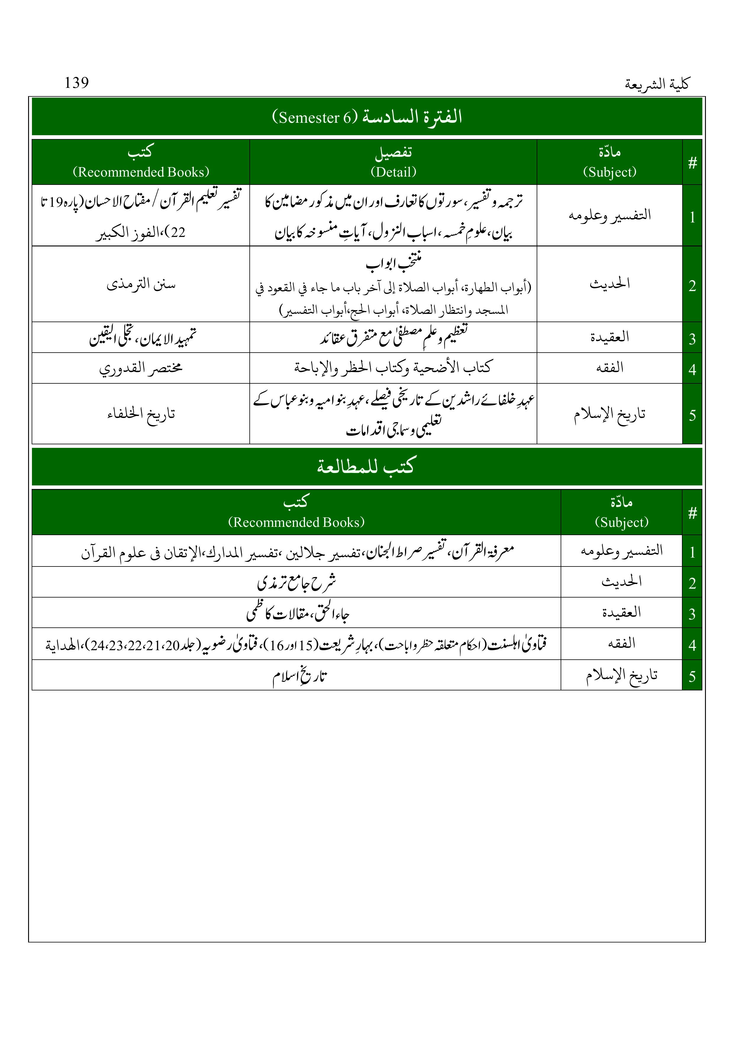 Kulya tul Shariah (Boys) SEMESTER 1 TO 8
