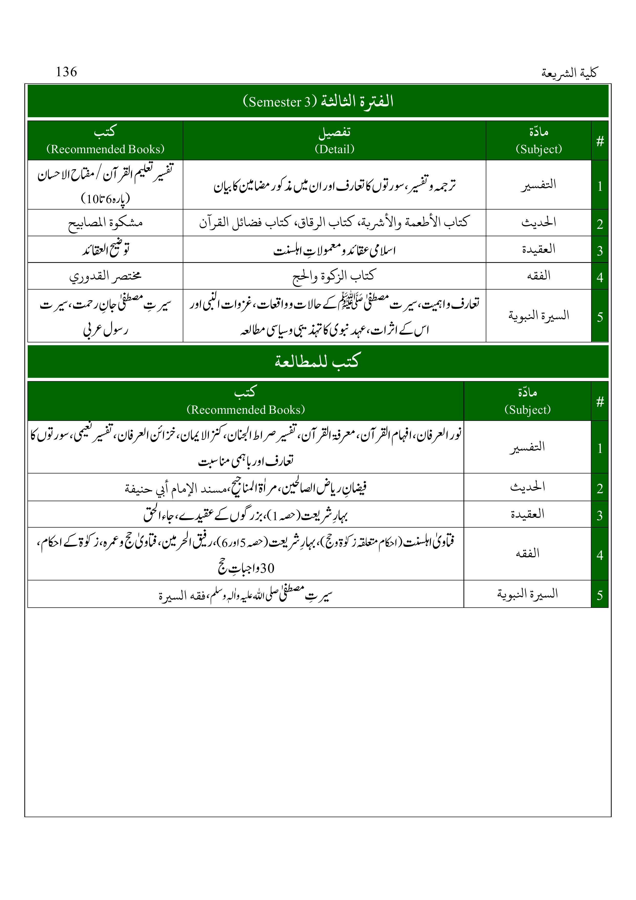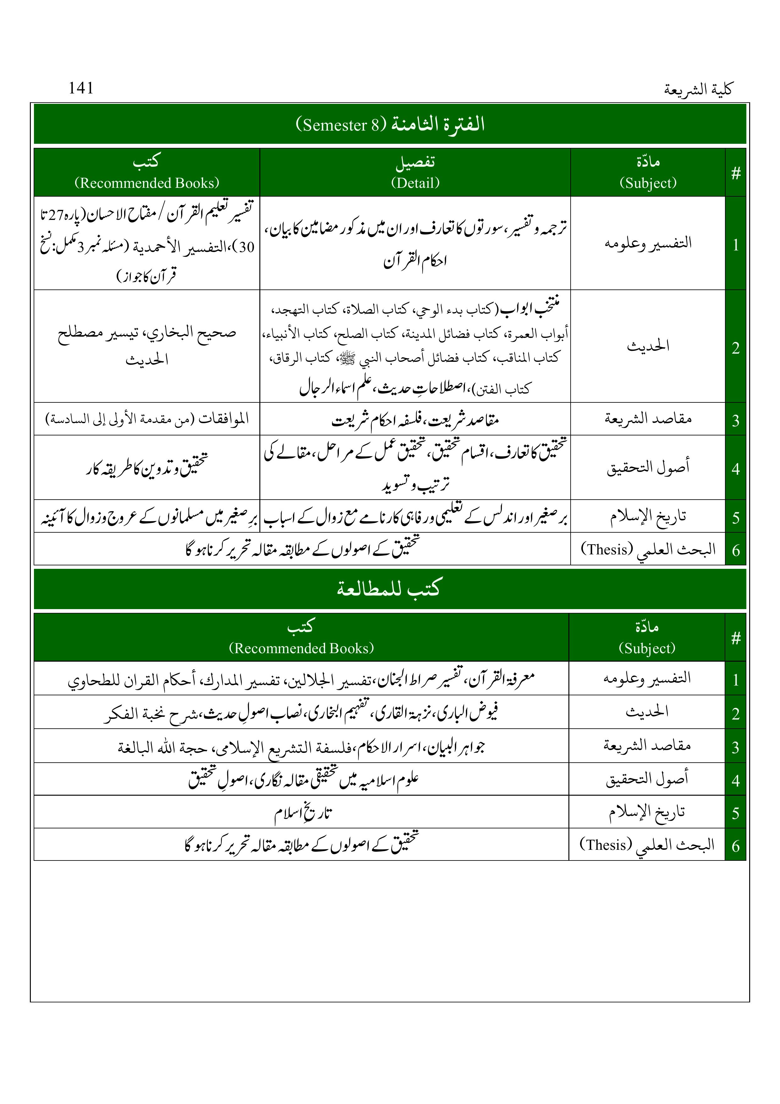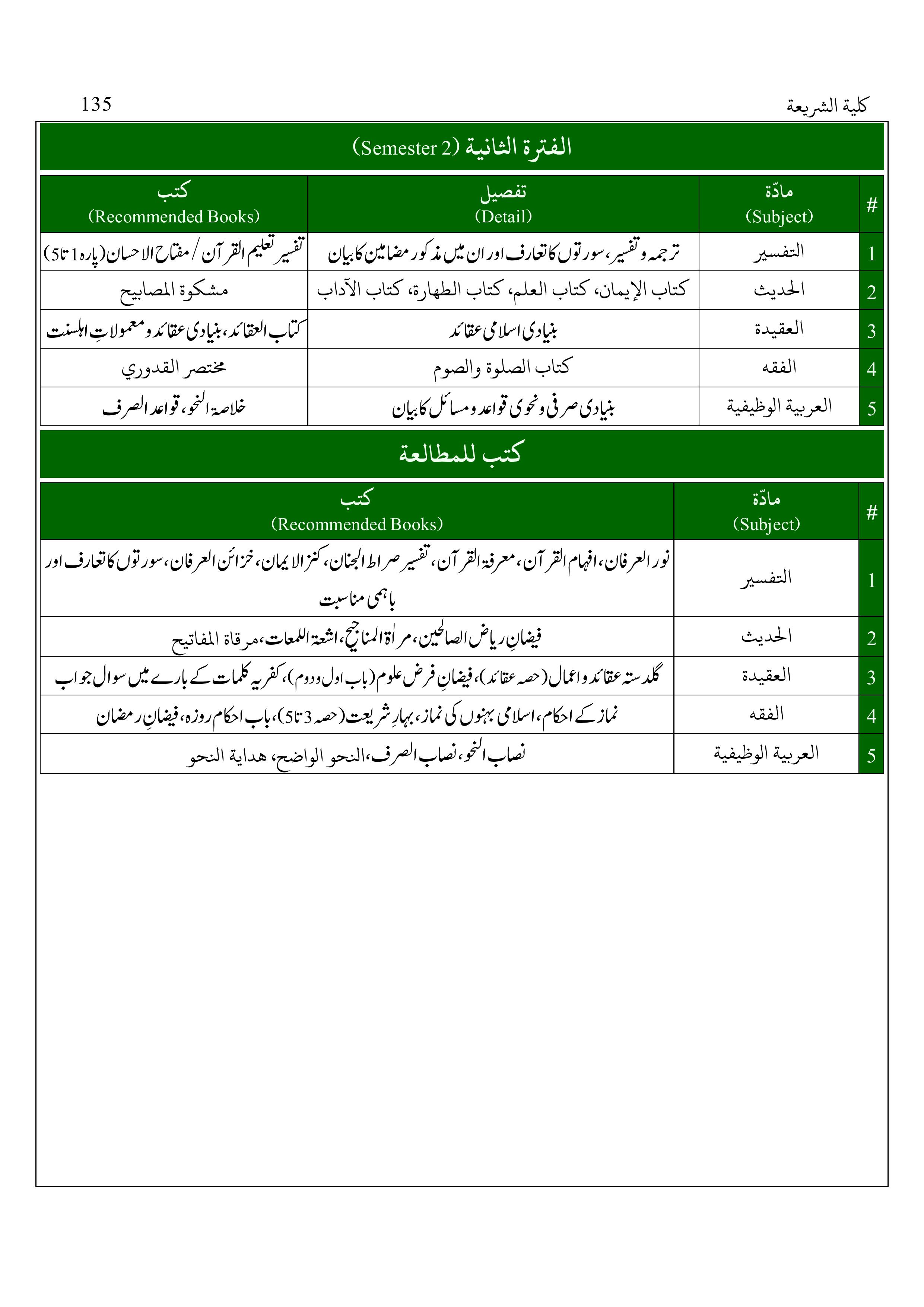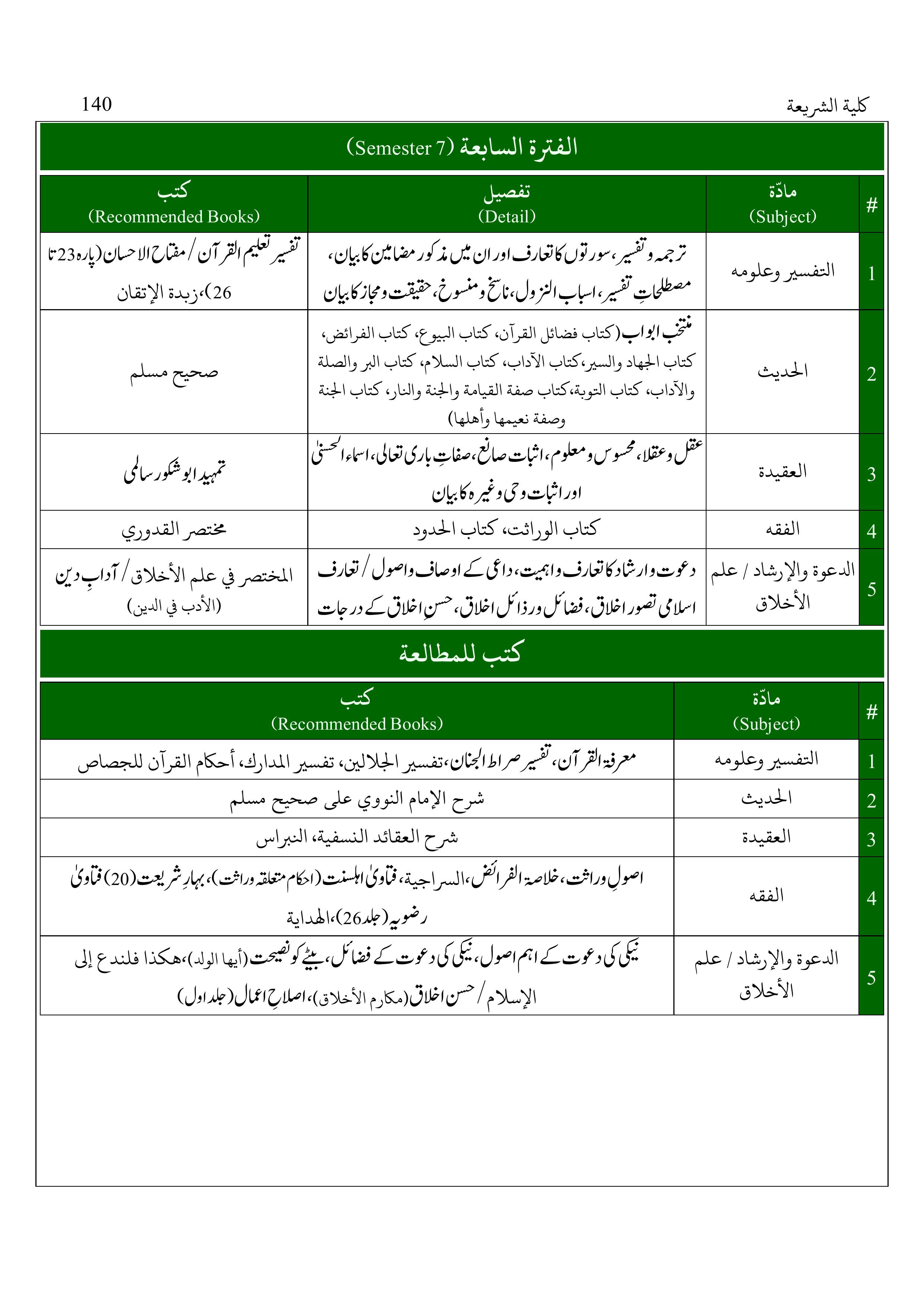 Kulya tul Shariah (Boys) SEMESTER 1 TO 8